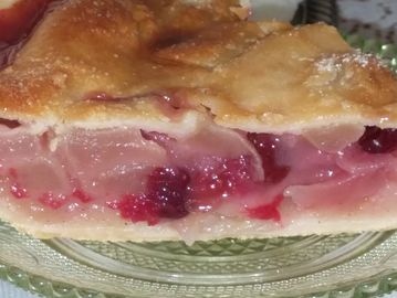 Apple pie with cranberries tucked in with the apples for a perfect balance of sweet and tart.
