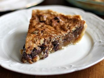 Pecans with honey bourbon and chocolate chips to make a perfectly balanced pecan pie.
