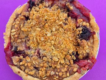 Our apple pie features a brown sugar and oatmeal crumble topping.