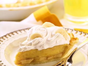Fresh bananas layered with homemade vanilla pudding with fresh whipped cream or meringue on top.